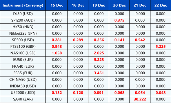 Please be advised that the following instruments’ trading hours and market session times will be affected by the upcoming Christmas holidays.