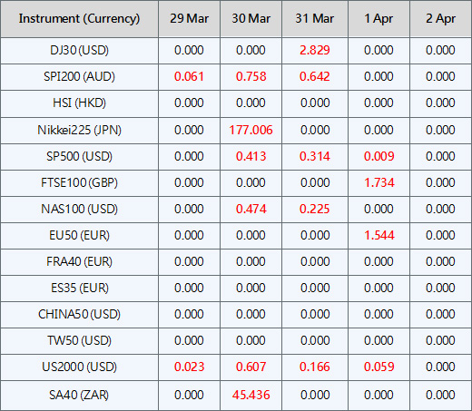 Please be advised that the dividends of the following index CFDs will be adjusted by upcoming ex-dividend dates. The comment for trading index CFDs will be in the following format “Div&<Product Name>&<Net Volume>” which show in the balance after the close of the day before the dividend payment date.