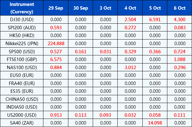 Please be advised that the dividends of the following index CFDs will be adjusted by upcoming ex-dividend dates. The comment for trading index CFDs will be in the following format “Div&<Product Name>&<Net Volume>” which show in the balance after the close of the day before the dividend payment date.