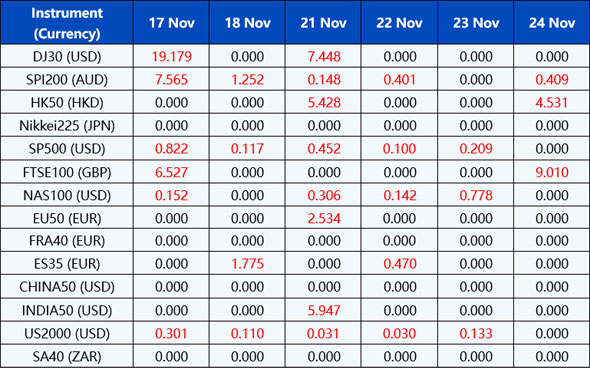 Please be advised that the dividends of the following index CFDs will be adjusted by upcoming ex-dividend dates. The comment for trading index CFDs will be in the following format “Div&<Product Name>&<Net Volume>” which show in the balance after the close of the day before the dividend payment date.