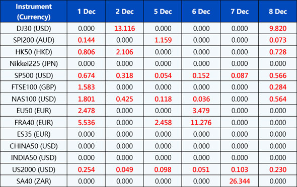 Please be advised that the dividends of the following index CFDs will be adjusted by upcoming ex-dividend dates. The comment for trading index CFDs will be in the following format “Div&<Product Name>&<Net Volume>” which show in the balance after the close of the day before the dividend payment date.