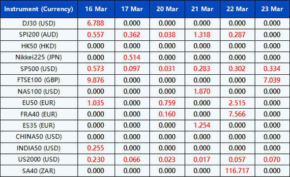 Please note the above data are subject to changes. Please refer to MT4/MT5 for details.