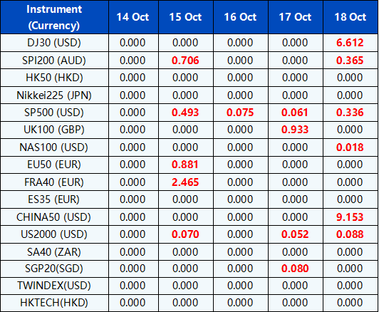 Please note the above data are subject to changes. Please refer to MT4/MT5 for details.