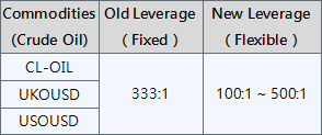 Please be advised that the leverage on all Commodities (Crude Oil) products will be adjusted according to clients account leverage range between 100:1 to 500:1 starting from 21st February 2022 to further optimize the competitiveness and improve the trading environment.