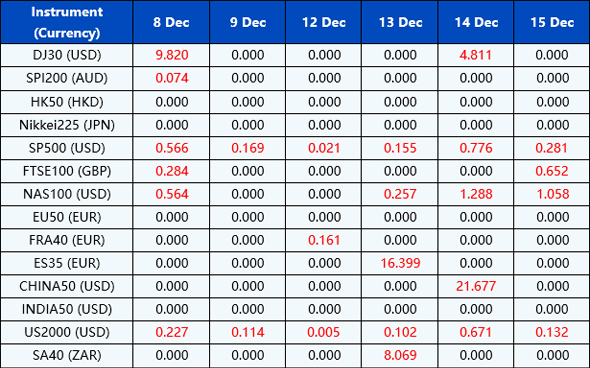 Please be advised that the dividends of the following index CFDs will be adjusted by upcoming ex-dividend dates. The comment for trading index CFDs will be in the following format “Div&<Product Name>&<Net Volume>” which show in the balance after the close of the day before the dividend payment date.